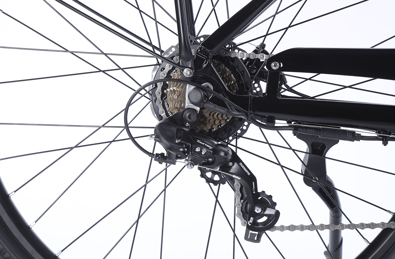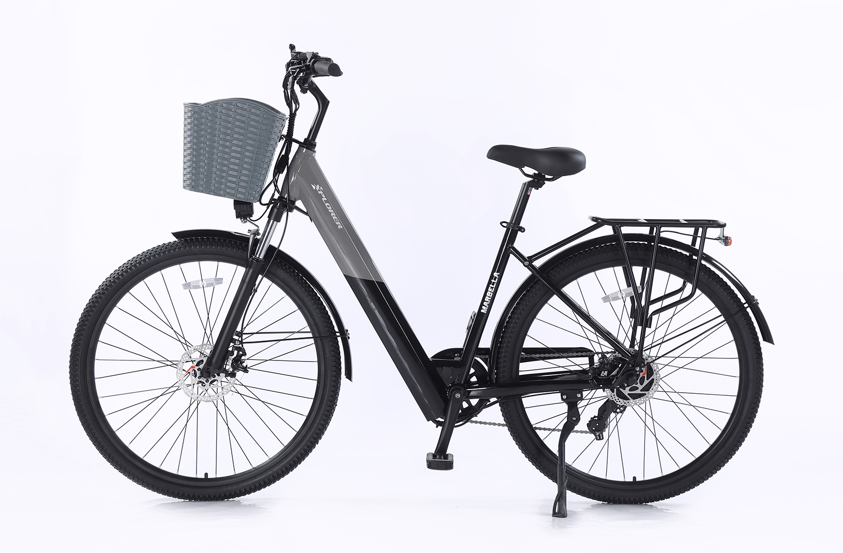 With a 350 W motor and 36V10AH battery, the MARBELLA delivers up to 60 km of range. Maximum speed is limited to 25 km/h in compliance with EU law. The 7-speed SHIMANO drivetrain and mechanical disc brakes ensure precise and safe riding across various terrains.