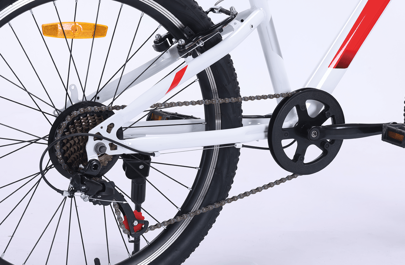 Equipped with 7 speeds and grip shifters, children can easily adjust gears for different terrains, from city streets to park trails. Reliable V-brakes provide precise stopping power, giving both parents peace of mind and kids confidence and control.