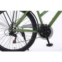 The steel frame combined with a suspension fork ensures a smooth and controlled ride, while 27.5" wheels offer an excellent balance between agility and stability. With a 21-speed drivetrain, the bike easily adapts to different terrains, and disc brakes provide strong and consistent stopping power.